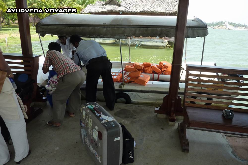 The Poovar Island Resort is on the lake, but the Ayurvedic part is set back, so a good 5 minute walk from the pier, crossing the resort gardens.